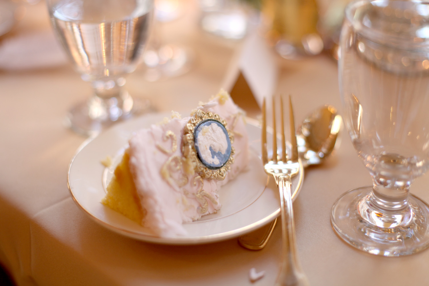 Gorgeous details! There was a lovely fondant cameo that was on my slice. I wrapped it in a napkin and took it home to my daughter. ;)