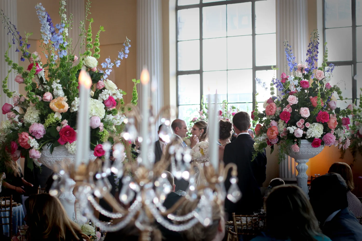 This weekend's wedding was located in Roanoke, Virginia. The bride dressed at Hotel Roanoke. The wedding Ceremony was at Greene Memorial United Methodist Church. The reception venue was at the Corinthian Ballroom. The wedding theme was Marie Antoinette.