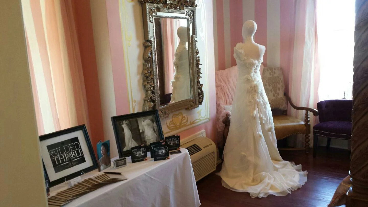 Lauren's veil hanging after I steamed it. Her veil also required a lot of my assistance. It was a true cathedral length. It was silk tulle and originally 1200 bucks!! Lauren got it for less than 200 because of a tear in the veil. Betcha can't find it!! ;) A few moments of Gilded TLC and the veil was better than new. The freshly steamed gowns are hanging. The flower girl's dress was a dream and was from Nellystella and looked like this. So sorry that I can't share a picture of the dress! The flowers girl's eyes were amazing and would have been so pretty to share! My wedding day services include a blog post, but the bride is my priority and I was busy with her gown. I also didn't get any cake or reception pics. Stay tuned for all the details by A Muse Photography!