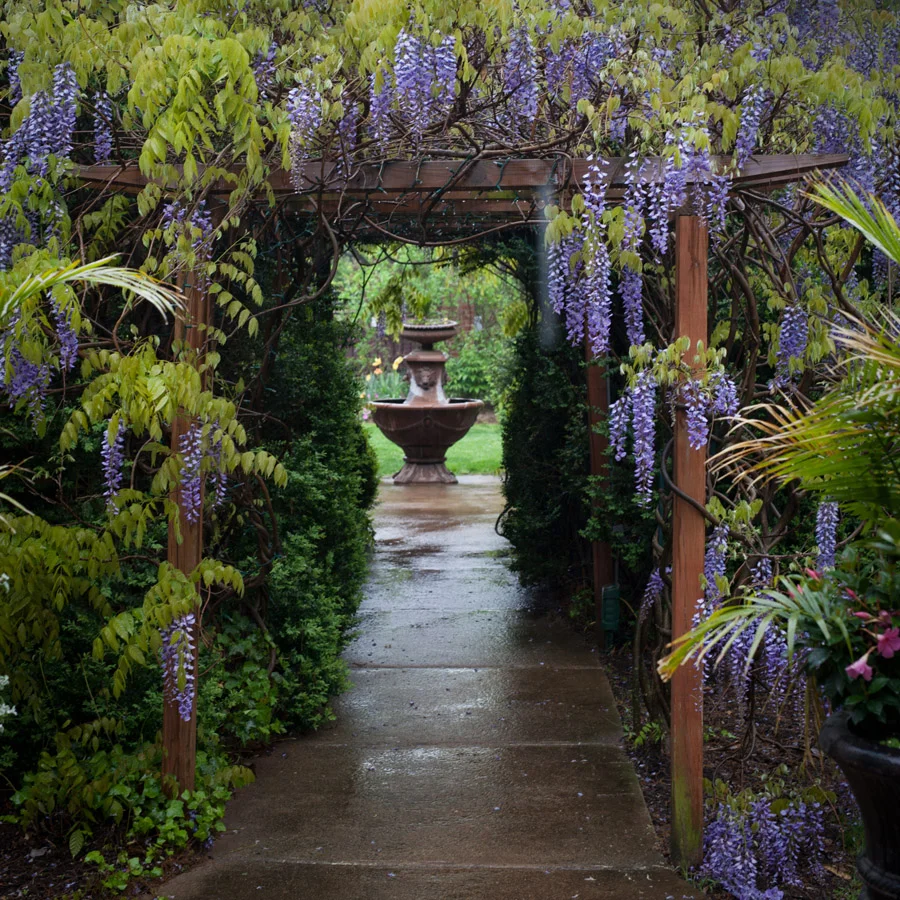 Another special treat for Karen is the blooming wisteria. As us southern belles know, wisteria bloom is a short lived show. Only one bride a year is graced with walking through the tunnel dripping with purple wisteria. Karen was that girl!! There was also a single orange left on the charming orange tree.