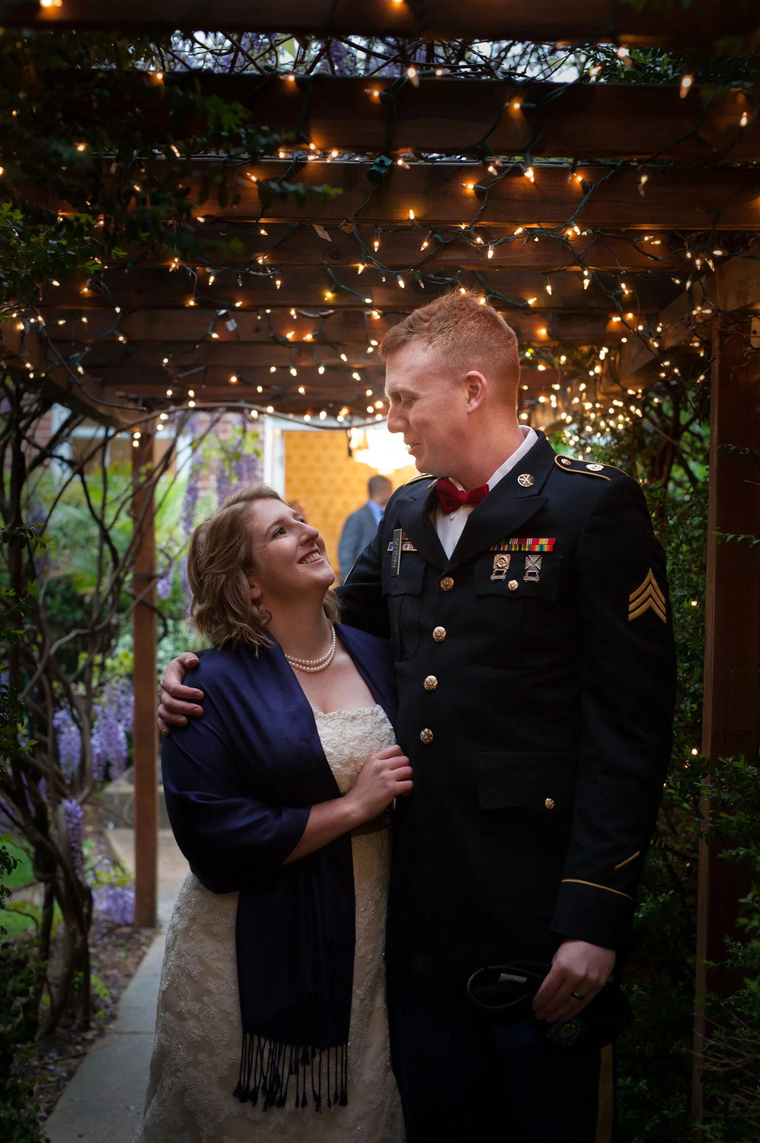 Karen and Bill pause in the glittering arbor. What a striking couple they are! Many blessings to you both!