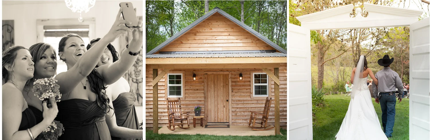 All the bridesmaid's were able to walk down the aisle in perfectly fitted gowns due to our last minute tweaks. They got ready in the newly built cabin. Hannah entered the ceremony site through Diamond V's hallmark white doors.