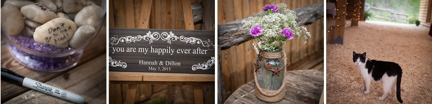 We just had our first May 2015 wedding at the beautiful Diamond V Farm. Hannah's situation was a little different because she had a barn venue, yet opted for a gown with a long train. A long train requires a little more care. When I first arrived, I was immediately busy. Two of the bridesmaid's dresses needed adjusting. (Thank goodness for a sewing machine!) One had lost a loop. A groomsman's shirt that arrived in the mail at the 11th hour needed pressing. And all of the gowns needed to be steamed, as usual. I set to work sewing instead of first taking my leisurely stroll that I normally take upon my early arrival. -So forgive! I have no cake pics or vendor mentions for that. But, Hannah's photographer, Jenny Clark of Don't Blink Photography will have all of those details recorded beautifully.