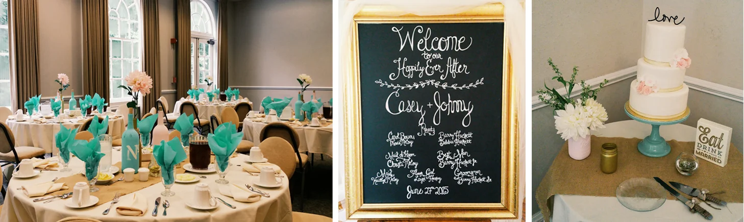 The catering was by Sweet Briar College Catering. The flowers and decor were all DIY! The cake was by Angie Moore of Angie's Custom Cakes. Music and lights by DJ Kidd Carter, another K92 personality.