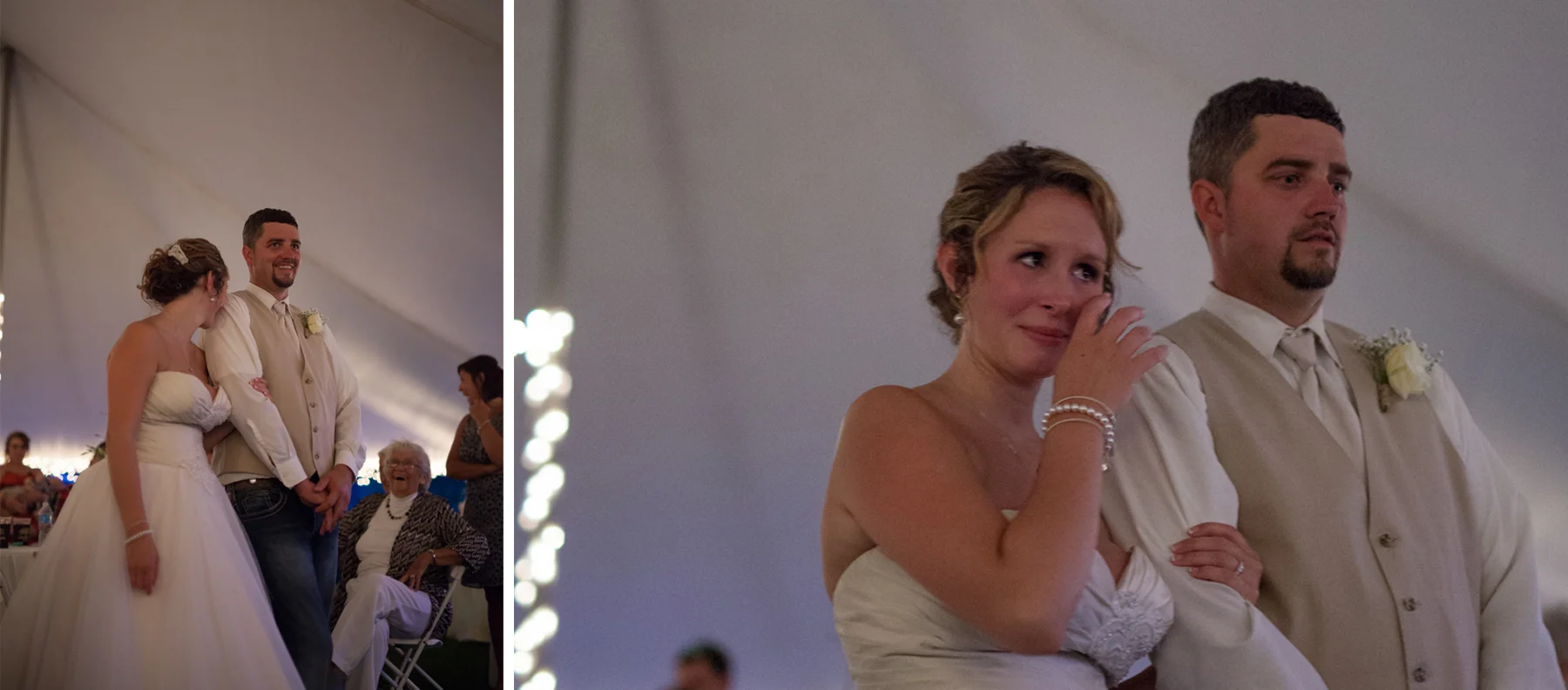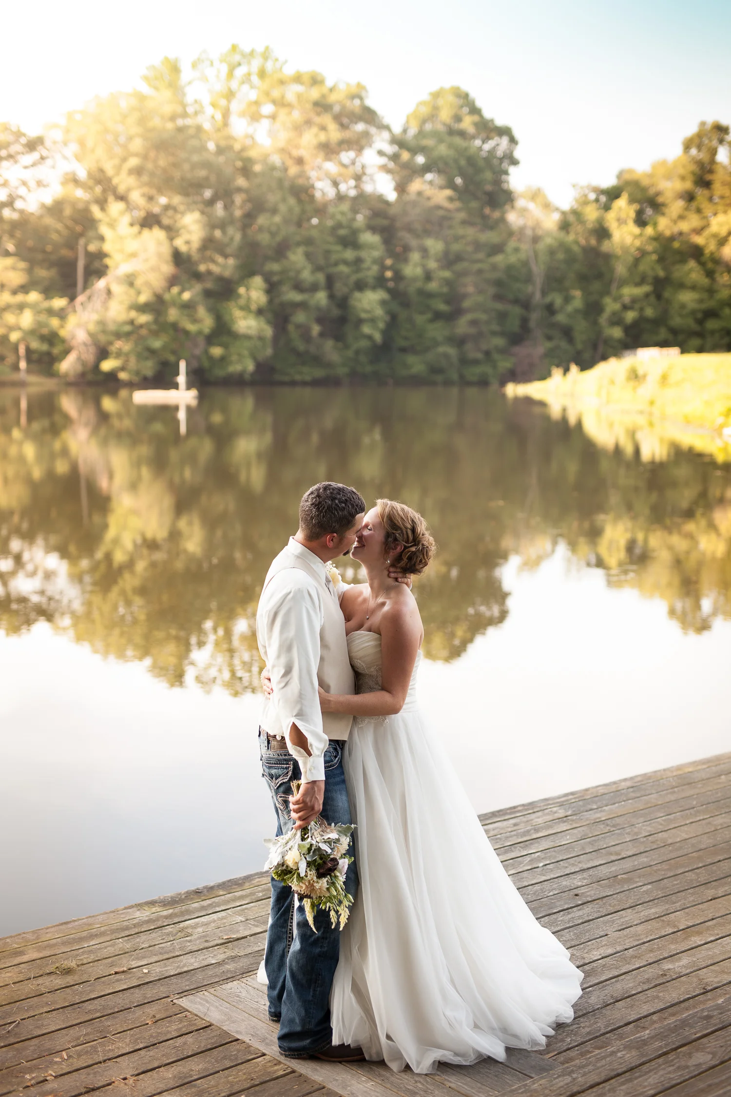 We got off to a busy start, but the wedding party was actually pretty low key. There were no wardrobe malfunctions once everything got moving. The weather could not have been more perfect. I spot cleaned Hannah's gown before she was announced at the reception. I bustled her into her triple bustle before taking off down the rolling, country drive.