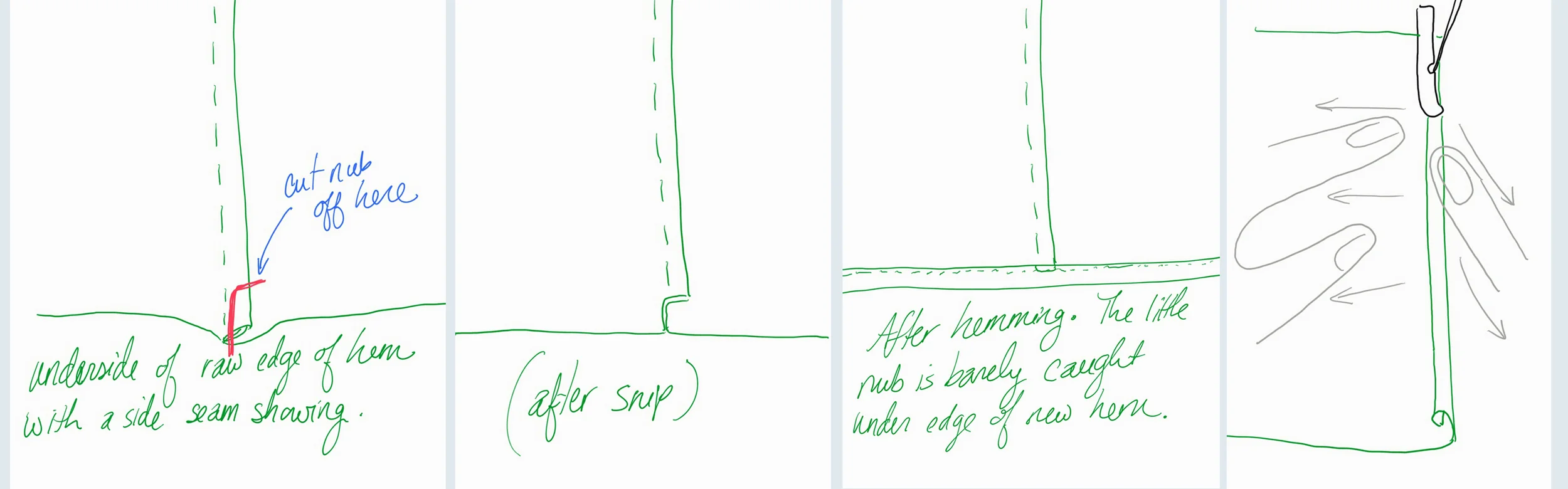 While I illustrate how to mark, I'm going to go ahead and give a few cutting and hemming pointers as well.